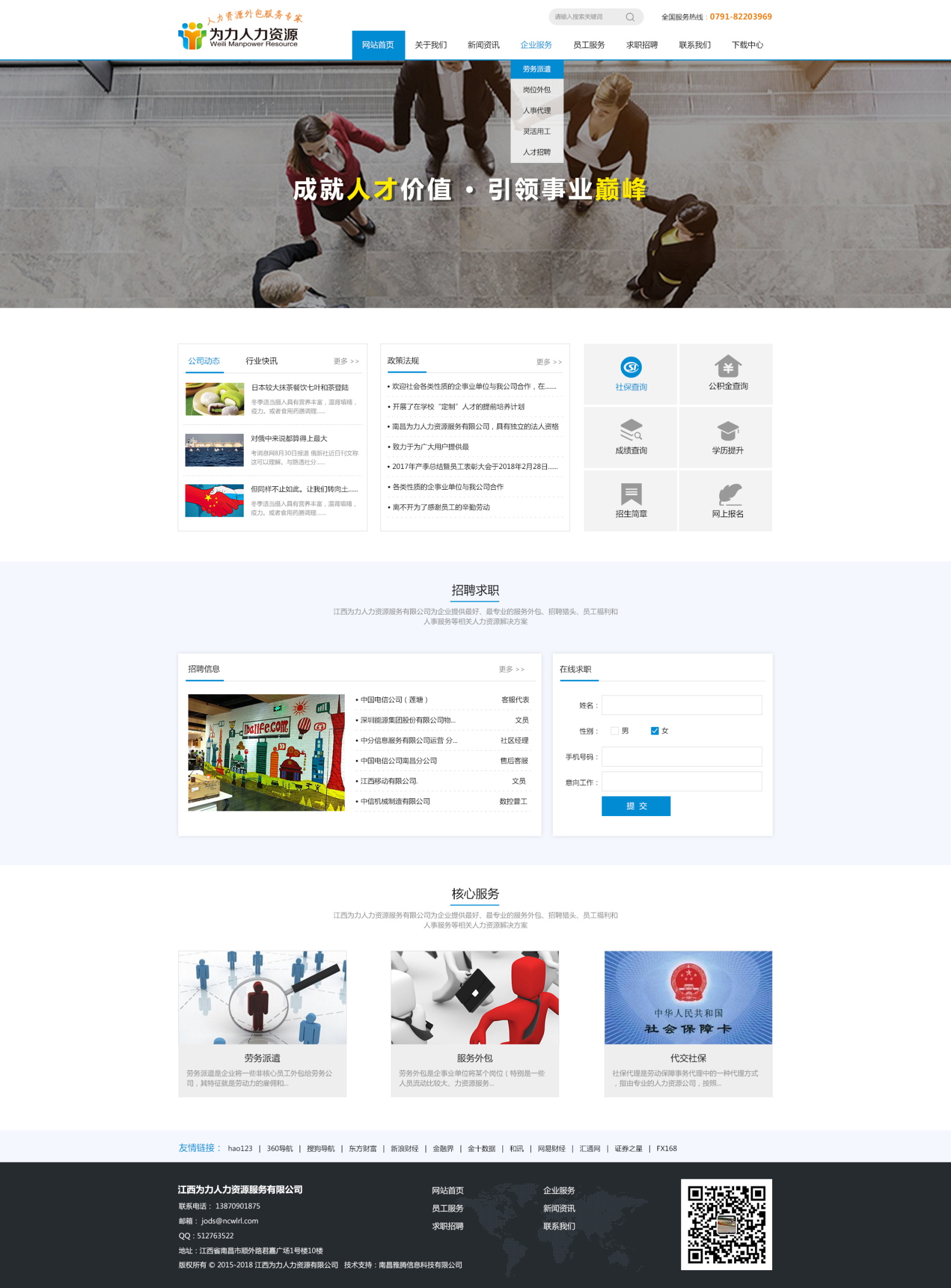 南昌為力人力資源服務(wù)有限公司,具有獨立的法人資格,是國內(nèi)較早涉足人才派遣業(yè)務(wù)的人才中介機構(gòu)。公司憑強大的招聘平臺、快捷的網(wǎng)絡(luò)、依托完整的檔案管理系統(tǒng),以全新的理念和創(chuàng)新的精神打造自己的服務(wù)品牌,并致力于建設(shè)全方位提供人才派遣服務(wù)的專業(yè)機構(gòu)。目前本公司服務(wù)涵蓋機關(guān)、事業(yè)、金融、高校、醫(yī)療、研究院所、信息IT、服務(wù)行業(yè)、各類企業(yè),以及駐南昌機構(gòu)等各類單位。歡迎社會各類性質(zhì)的企事業(yè)單位與我公司合作。在我們的竭誠服務(wù)中,為力人力資源服務(wù)有限公司為企業(yè)提供最好、最專業(yè)的服務(wù)外包、招聘獵頭、員工福利和人事服務(wù)等相關(guān)人力資源解決方案。