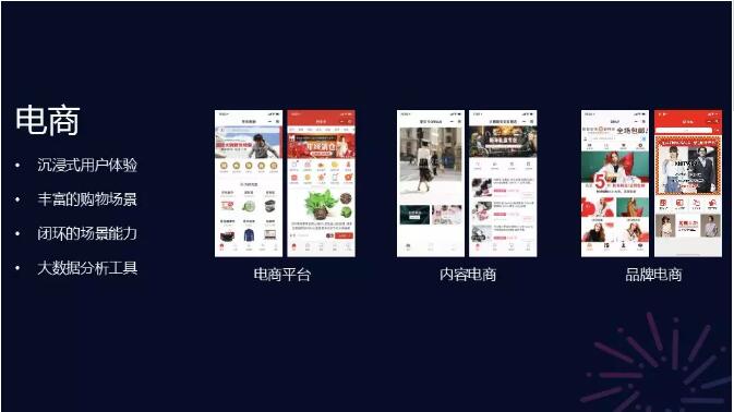 電商領域,小程序和行業(yè)的合作伙伴一起找到了一些新的增長點;95%的平臺電商已接入小程序,如京東/拼多多/蘑菇街等,小程序建立了新的購物習慣;微信中的新場景——內(nèi)容電商受到歡迎。