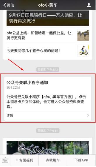 當(dāng)關(guān)聯(lián)操作完成時(shí),公眾號(hào)可以選擇向關(guān)注者發(fā)送一條關(guān)聯(lián)通知,引導(dǎo)關(guān)注者體驗(yàn)、使用小程序。