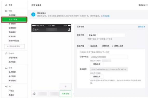 還記得公眾號(hào)底部的「自定義菜單」功能嗎?沒錯(cuò),「自定義菜單」也可以插入小程序鏈接。